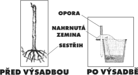 Sází se do dostatečně velké a prolité , lehce prohnojené jámy. Výhon se celý zahrne zeminou. Po vyrašení očka přidáme oporu a při růstu vyvazujeme.