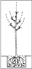 Sází se na podzim i na jaře do dostatečně velké a prolité jámy tak, aby roub, který je umístěn nad kořenovou částí rostliny byl cca 2 cm nad zemí. Sestřih koruny po výsadbě se provádí na jaře tak, že zkrátíme všechny výhony na 5 oček od kmene stromku.